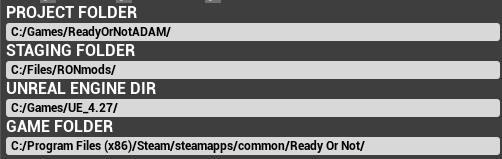 - Game Folder: Should be the top directory of your Ready Or Not game installation.